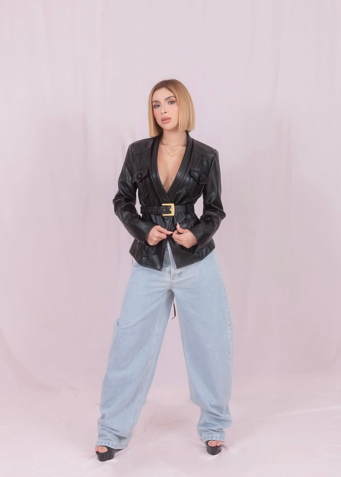 Pantalon de mezclilla recto con cinta en la parte de atrás