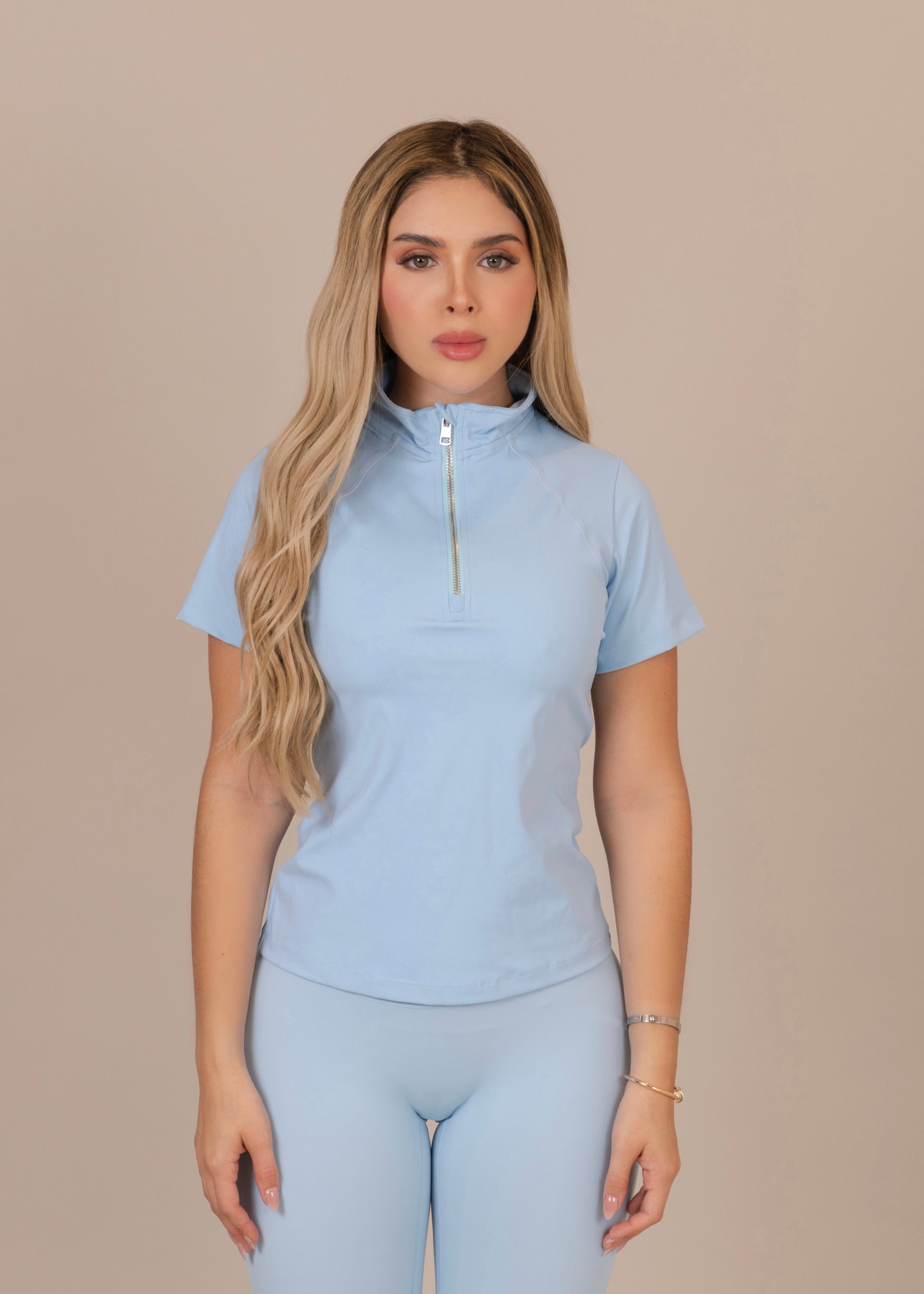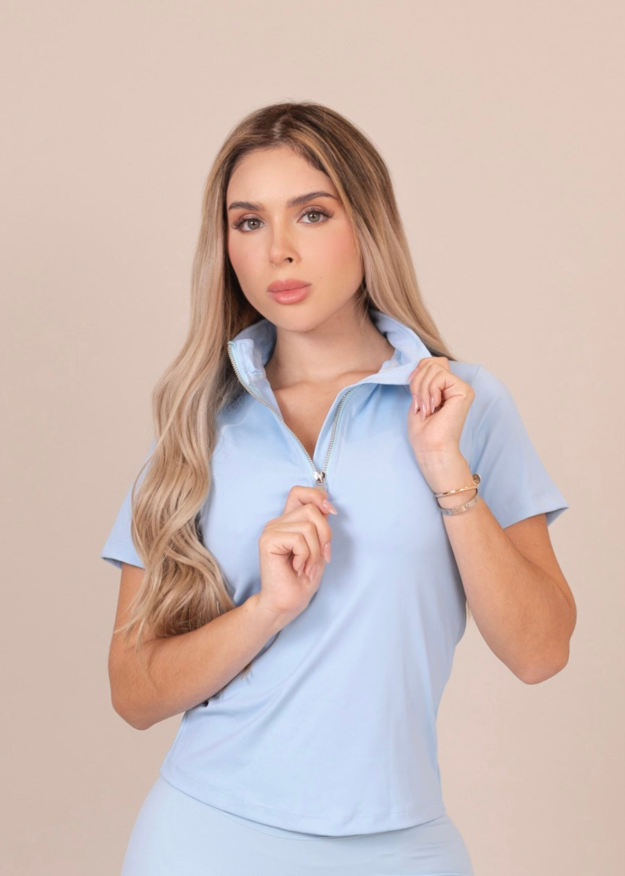 Top Manga corta con cierre en cuello