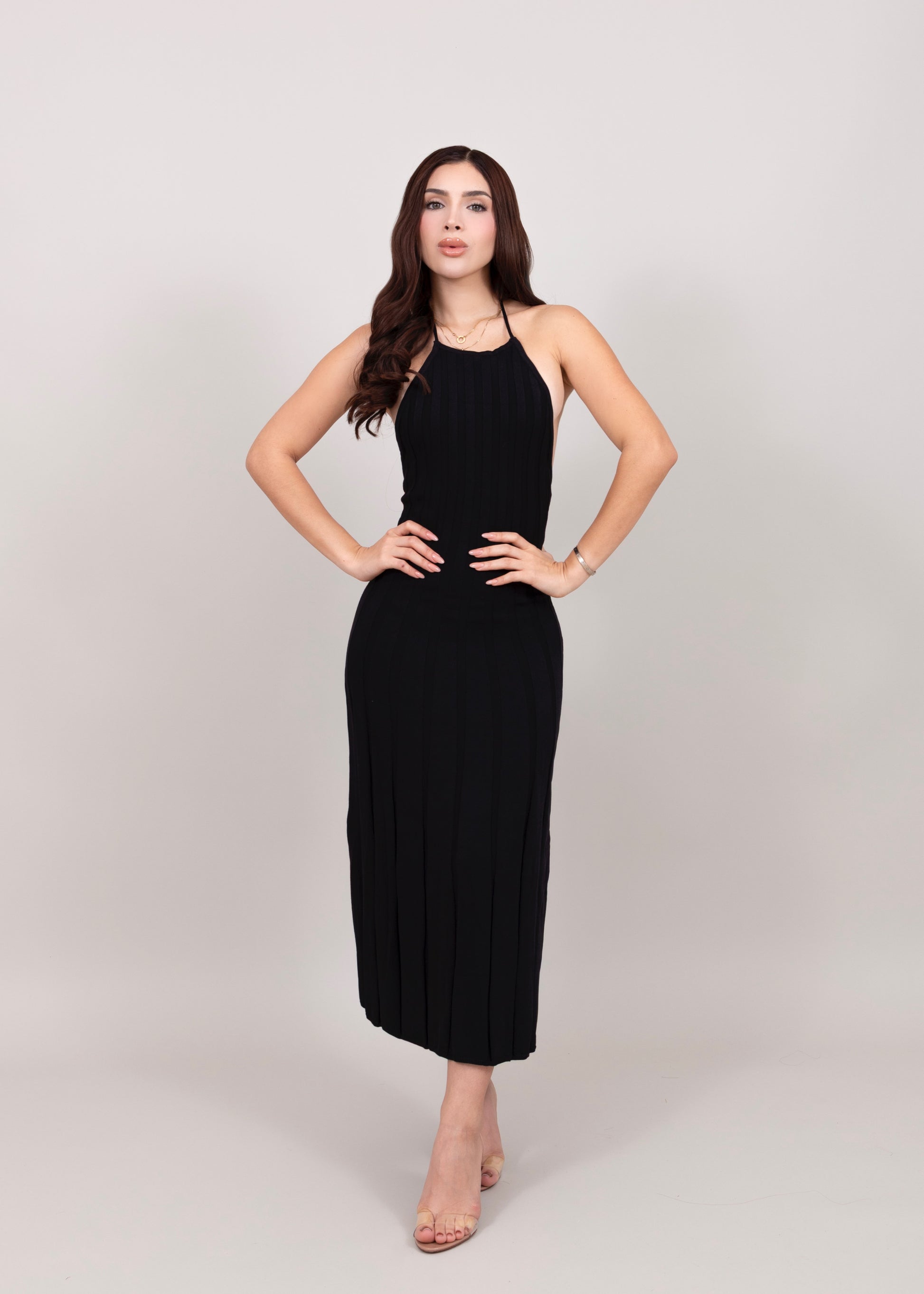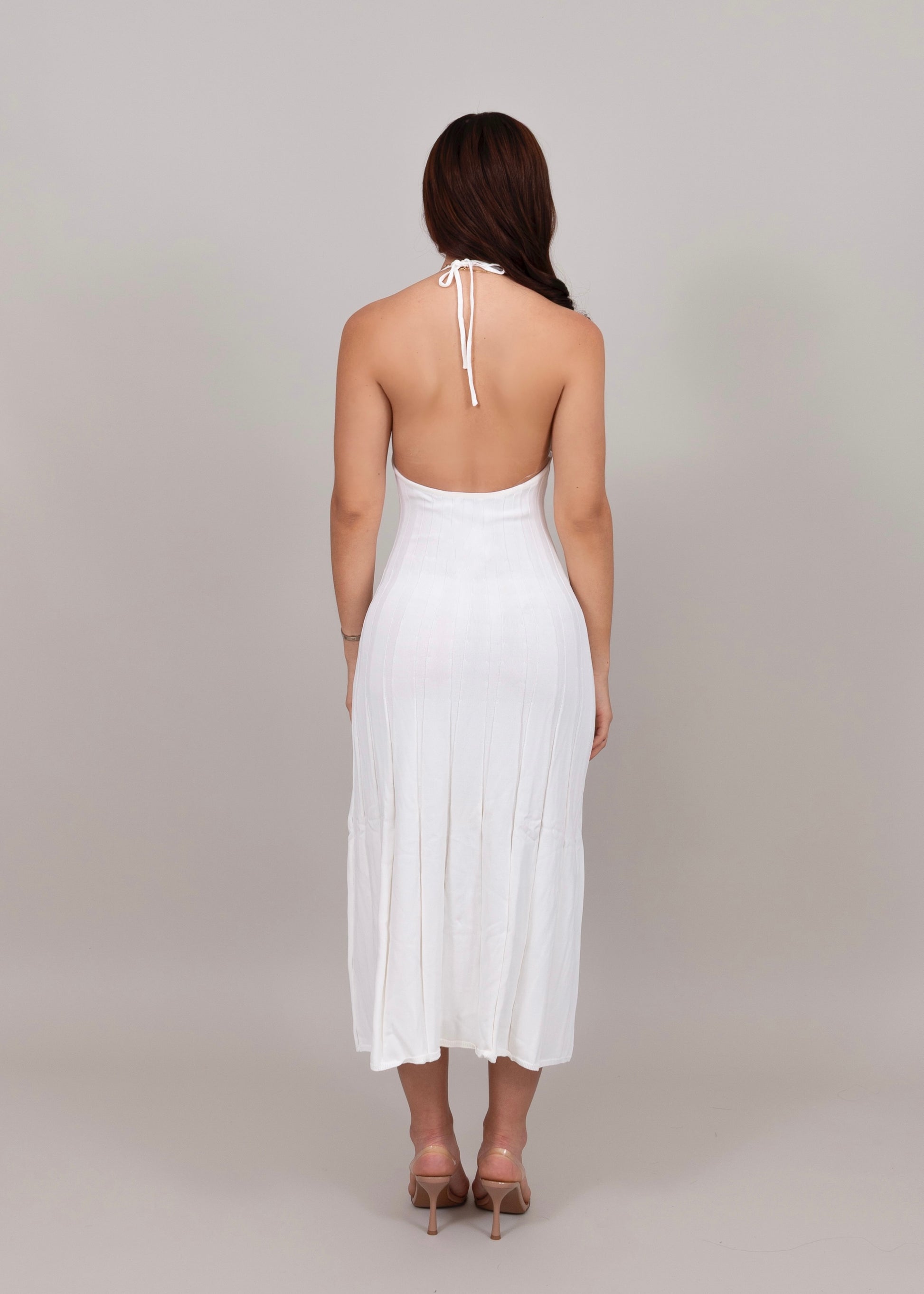 Vestido knit cuello halter, midi disponible en blanco y negro